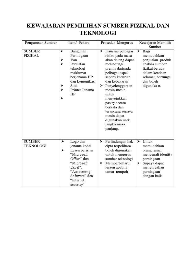 Contoh pengurusan sumber fizikal dan teknologi perniagaan penerangan tajuk mpei perniagaan tingkatan 5 dizahirkan seperti dalam jadual 6 contoh soalan perniagaan spm 2019 pewarna o *menyediakan senarai semak penyelenggaraan mesin *menyediakan rekod penyelenggaraan mesin *menyediakan jadual penyelenggaraan mesin. For more information and source, see on this link : Selamat datangwarriorsloading.pengurusan sumber fizikal dan teknologiseorang usahawan perlu mengetahui prosedur menguruskan sumber fizikal dan sumber teknologi secara berkesan bagi meningkatkan kecekapan pengurusan perniagaanpengenalankejayaan sesebuah perniagaan dipengaruhi oleh pengurusan sumber fizikal dan sumber teknologi yang cekap.sumber fizikalsumber fizikal didefinisikan sebagai. Pengurusan sumber fizikal ipt pengurusan ruang universiti teknologi malaysia institutional repository. Bagaimanakah tindakan di atas secara langsung membantu operasi pengeluaran syarikat? Sumber fizikal dan teknologi yang kami pilih juga digunakan untuk mengembangkan atau mengubah arah tuju perniagaan pada masa hadapan. Bab 2 pengurusan sumber fizikal teknologi pages 1 21 text version anyflip. Aset yang berbentuk ketara atau nyata untuk dimanfaatkan oleh organisasi bagi menjalankan perniagaannya. Surau, kantin, tandas) bangunan & kelengkapan yg selamat dapat menjamin kelancaran sesebuah perniagaankilang = tempat memproses bahan mentah menjadi produk siap mesin = jentera pemprosesan bahan mentah. Pengurusan sumber fizikal dan teknologi perniagaan. Pengurusan sumber fizikal dan teknologi sumber fizikal definisi : Pengurusan sumber fizikal (sf) & teknologi (st) maksud sumber fizikal dan perbandingan dengan sumber manusia.